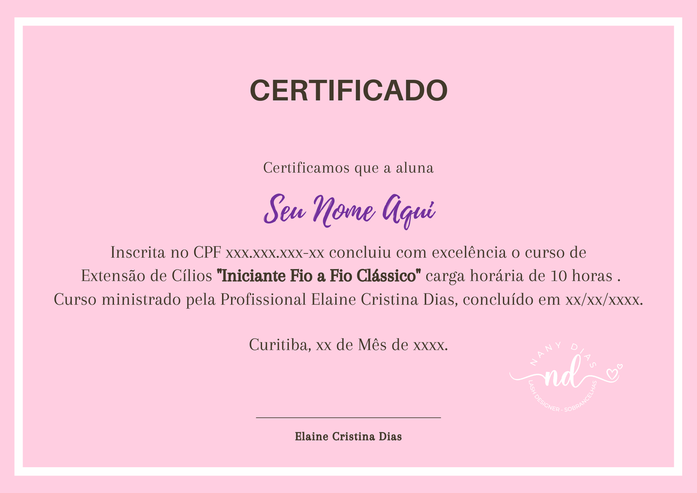 Larguei a minha carreira de PCP Industrial para me dedicar 100% ao meu negócio de Lash Designer, passando por diversos desafios e ganhando uma vasta experiência no ramo das Extensão de Cílios, desde de Excelência em Técnicas à Capitação e Fidelizaçao de clientes.